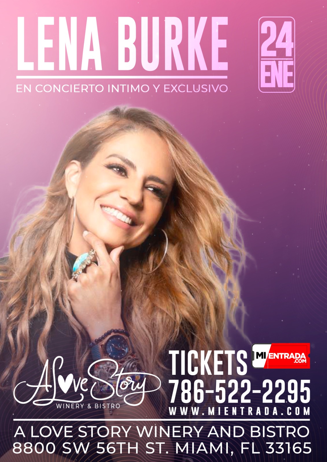 Home Events LENA BURKE CONCIERTO INTIMO LENA BURKE CONCIERTO INTIMO LLAMA YA! 786 522 2295 COMPRAR TICKET: https://ci.ovationtix.com/36625/production/1260987?performanceId=11738287 + Add to Google Calendar + iCal / Outlook export 00 days 00 hours 00 minutes 00 seconds Tags: DESTACADO Date Jan 24 2026 More Info COMPRAR ENTRADAS Labels MIAMI Location A Love Story 8800 SW 56th St, Miami, FL 33165, Estados Unidos Category CONCIERTO COMPRAR ENTRADAS Share this event
