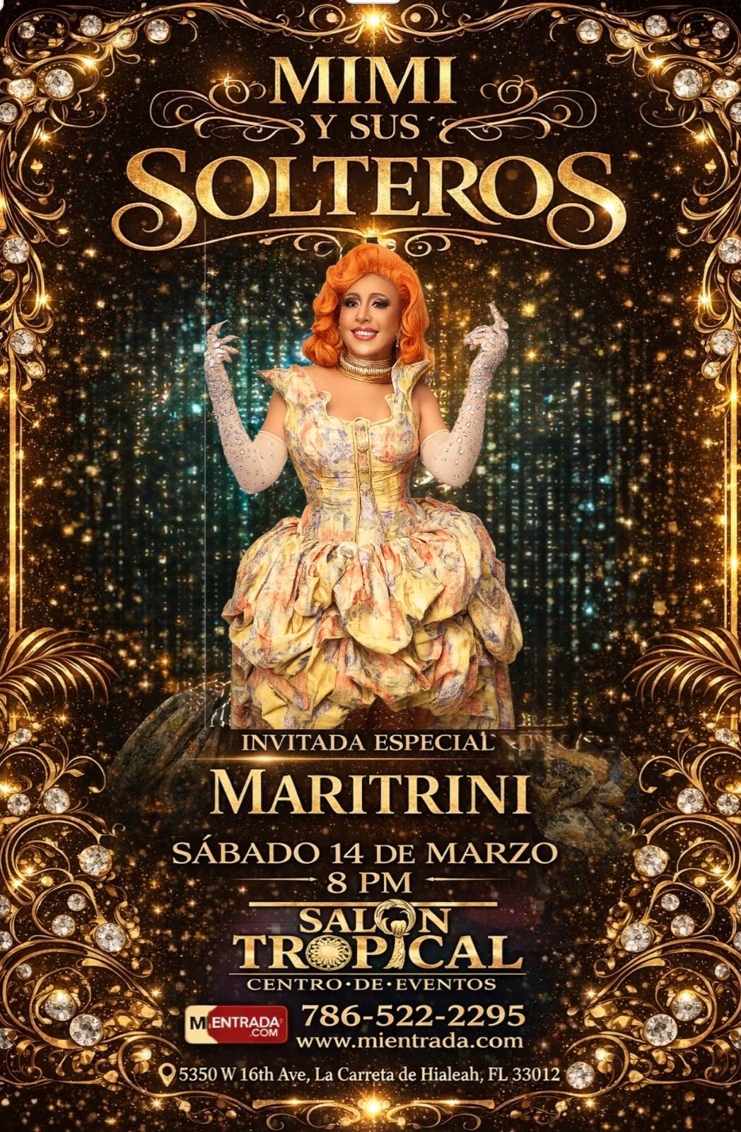 Home Events MIMI Y SUS SOLTEROS MIMI Y SUS SOLTEROS LLAMA YA! 786 522 2295 COMPRAR TICKET: https://ci.ovationtix.com/36625/production/1268213?performanceId=11779557 + Add to Google Calendar + iCal / Outlook export 00 days 00 hours 00 minutes 00 seconds Tags: DESTACADO Date Mar 14 2026 More Info COMPRAR ENTRADAS Location Salón Tropical 5350 W 16th Ave, Hialeah, FL 33012 Category CONCIERTO COMPRAR ENTRADAS Share this event